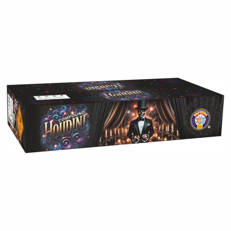 The Great Houdini by Brothers Pyrotechnics is a spectacular 300-shot compound firework with a 90-second duration. Packed with high-noise effects, it’s a true showstopper for any display.