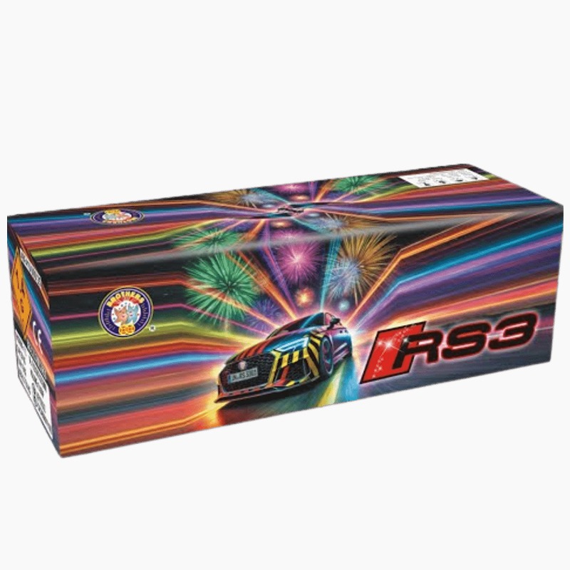 RS3 by Brothers Pyrotechnics is a massive 147-shot compound firework with nearly 3kg of gunpowder fired from 30mm tubes. Delivering huge vertical bursts over 2 minutes 10 seconds, it’s one of the largest consumer fireworks available.